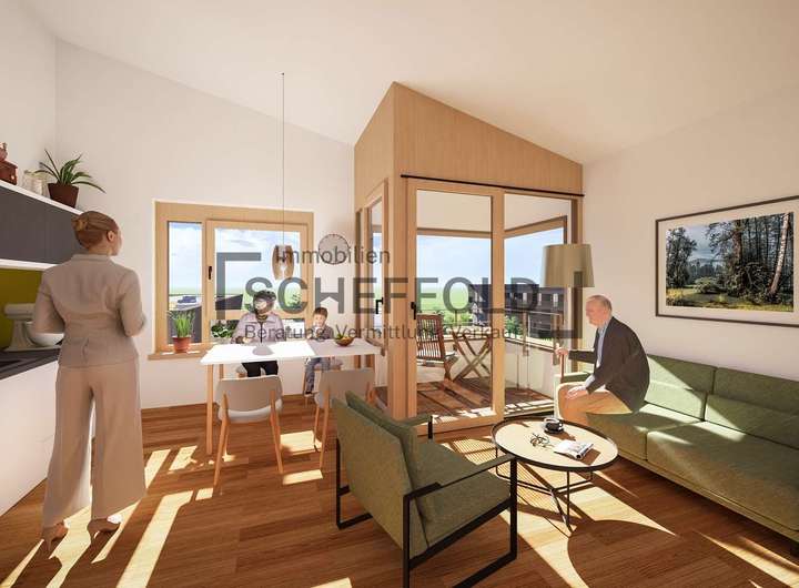 Die Häuser werden in Holz-Hybridbauweise errichtet, einer Bauweise, die Stabilität und Behaglichkeit perfekt kombiniert. Die robuste Betonkonstruktion sorgt für eine solide Basis, während Holz für ein angenehmes Wohnklima und ein natürliches Wohlfühlambiente steht. Jede Wohnung empfängt Sie mit edlem Echtholzparkett, einer eleganten Decke aus Weißtanne und hochwertigen Holz-Alu-Fenstern, die nicht nur für eine langlebige Optik sorgen, sondern auch das Raumklima positiv beeinflussen.