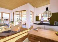 Die Häuser werden in Holz-Hybridbauweise errichtet, einer Bauweise, die Stabilität und Behaglichkeit perfekt kombiniert. Die robuste Betonkonstruktion sorgt für eine solide Basis, während Holz für ein angenehmes Wohnklima und ein natürliches Wohlfühlambiente steht. Jede Wohnung empfängt Sie mit edlem Echtholzparkett, einer eleganten Decke aus Weißtanne und hochwertigen Holz-Alu-Fenstern, die nicht nur für eine langlebige Optik sorgen, sondern auch das Raumklima positiv beeinflussen.