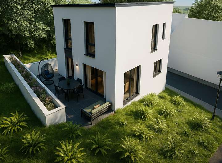 Das Grundstück wurde im Zuge der Bauplanung optimal ausgenutzt und erfüllt den KfW 40-Standardauf einer Wohnfläche von 138 m².