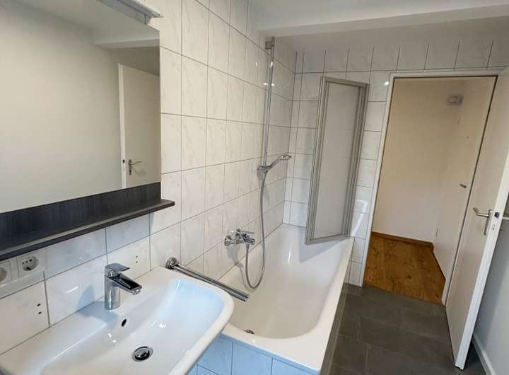 - Laminatboden in den Wohnräumen, Fliesen im Bad