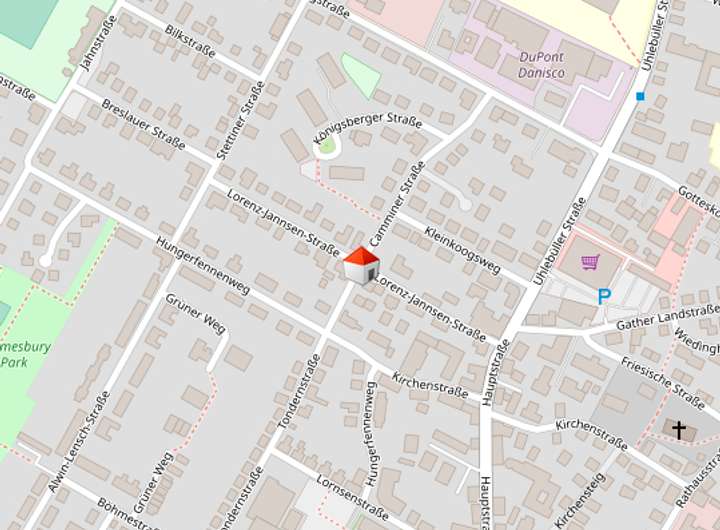 Das Grundstück liegt am Kreuzungspunkt der Lorenz-Jannsen-Straße und