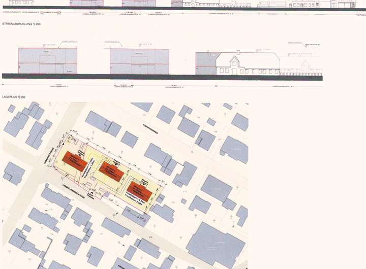 Es besteht bereits eine Bauvoranfrage, in dem insgesamt drei freistehende eingeschossige Mehrfamilienhäuser mit Satteldach angedacht sind. Der Nachweis der Stellplatzflächen (PKW/Fahrräder) für die geplanten maximal 12 Wohneinheiten erfolgt auf dem Grundstück. Die nachzuweisenden Abstellflächen für die einzelnen Wohnungen erfolgen über Nebenanlagen auf der Grundstücksfläche.