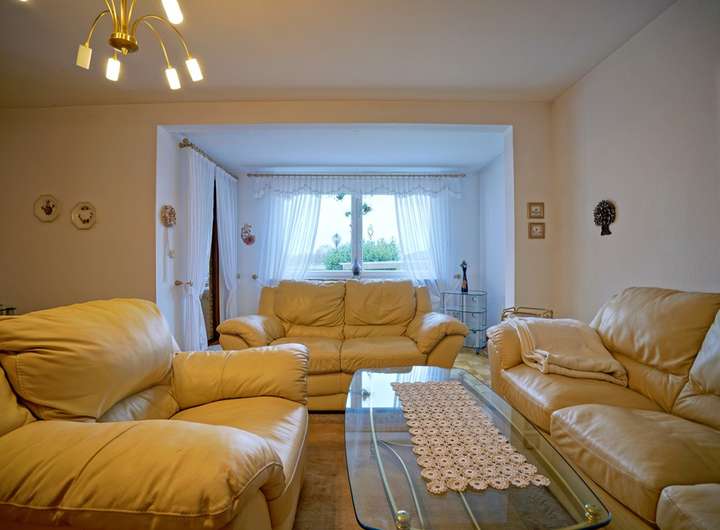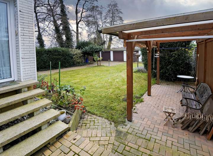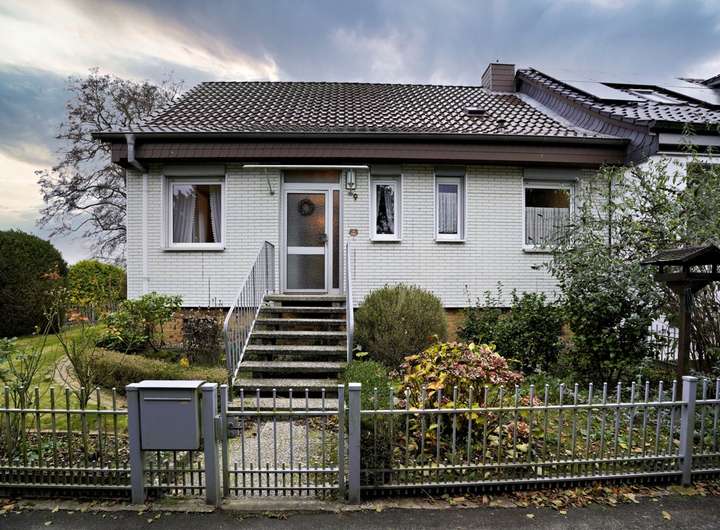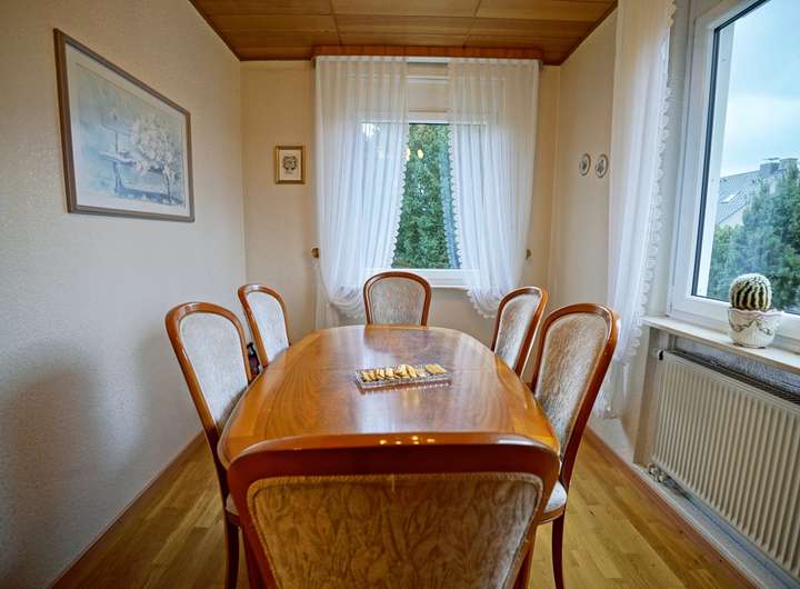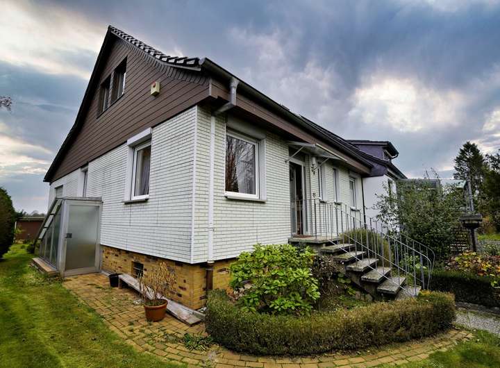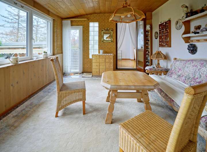 Auf einem großzügigen Grundstück von ca. 647 m² erstreckt sich dieses charmante Haus über zwei Etagen und bietet eine Wohnfläche von ca. 118,5 m² - zusammen mit der überbauten Terrasse. Mit insgesamt 5 Zimmern, darunter 3 Schlafzimmer, 1 Wohnzimmer sowie 1 Esszimmer finden hier sowohl Familien als auch Paare genügend Raum für individuelle Gestaltungsmöglichkeiten. Zudem gibt es einen geräumigen Wintergarten - von hier gelangen Sie dann in den Garten mit Feldblick.