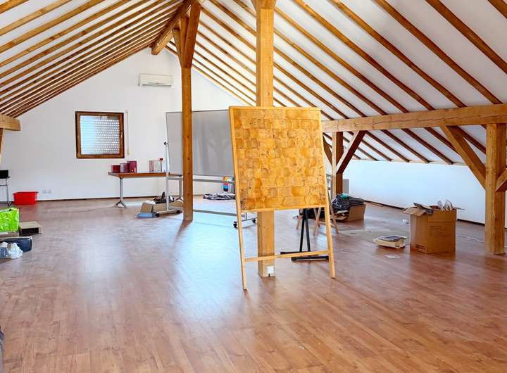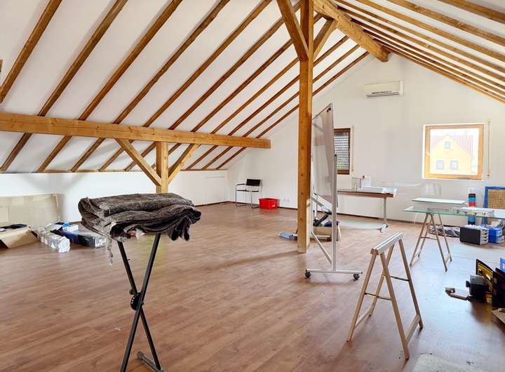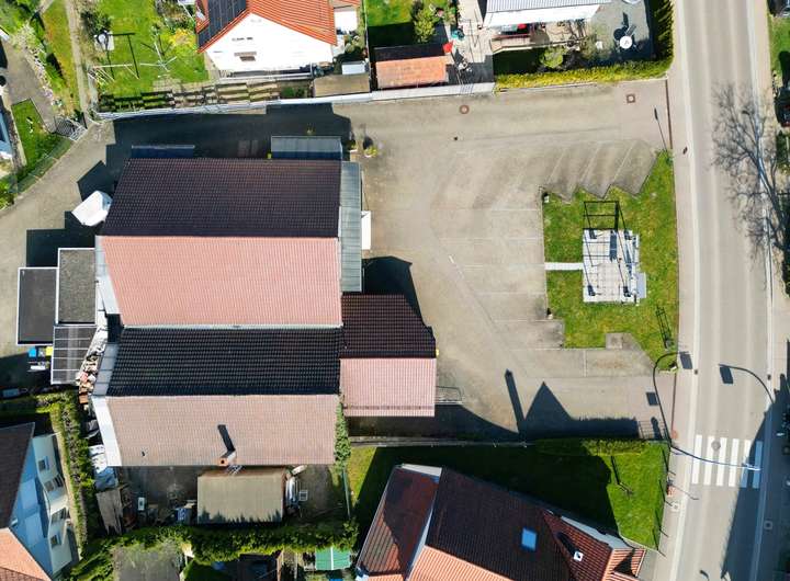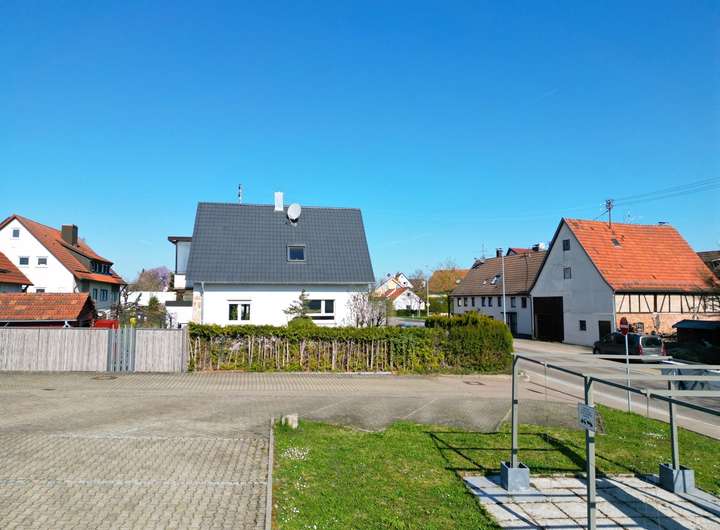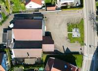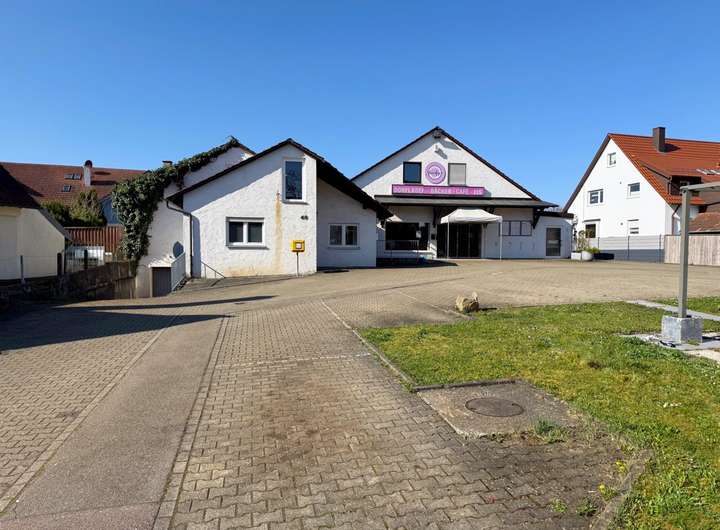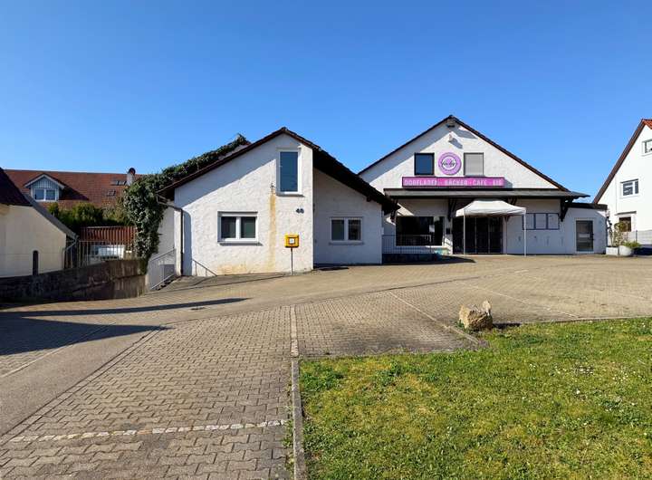 Aktuell ist das Grundstück mit einem eingeschossigen Gebäude bebaut, das zuletzt als Dorfladen genutzt wurde. Der Bau verfügt über ein Untergeschoss mit Sanitäranlagen, Lagerräumen sowie ein ausgebautes Dachgeschoss. Direkt angebaut befindet sich eine kleine Einheit mit zwei Zimmern und einem Bad, die bisher als Büro genutzt wurde, aber auch als kompakte Wohnung denkbar ist.