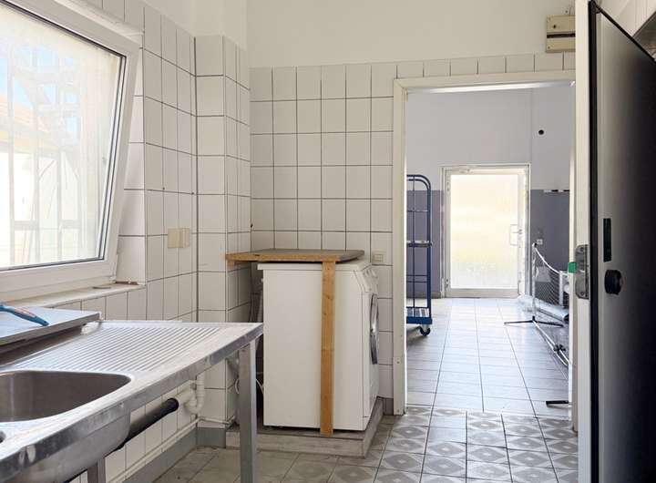 Der Gebäudebestand ist sanierungsbedürftig: Ein Wasserschaden hat insbesondere im Verkaufsbereich Schäden verursacht, der Boden ist aufgequollen, an den Wänden hat sich Schimmel gebildet. Der aktuelle Zustand lässt keine sichere Aussage zur Bausubstanz zu, daher wird das Objekt vorrangig als Grundstück mit Entwicklungspotenzial angeboten.