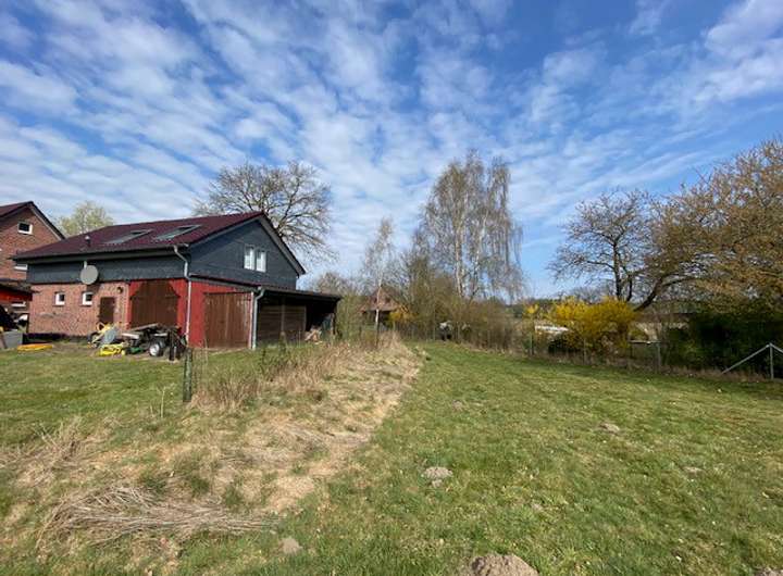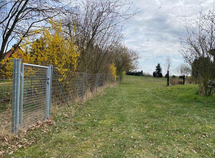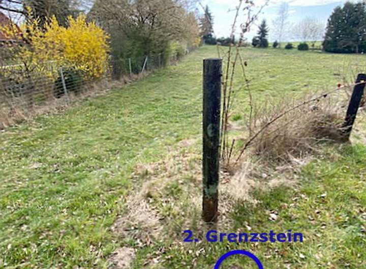 Das Baugrundstück ist ab sofort zum Kauf erhältlich und ermöglicht Ihnen die Verwirklichung eines maßgeschneiderten Zuhauses, das ganz Ihren persönlichen Vorstellungen entspricht. Das Baugrundstück ist bereits an drei Seiten eingefriedet. Von der Straße aus gesehen, befindet sich an der linken Seite eine doppelte Einfriedung. Der innere Wildzaun mit Pforte, ca. 66 m lang, ist rel. leicht zu demontieren und kann an anderer Stelle vom Käufer gesetzt werden, um die Einfriedung zu komplettieren. Von der Straße betrachtet rechts gelegen, besteht für den neuen Eigentümer eine Zaunpflicht mit 123 cm Höhe analog zur Front gem. insgesamt vier Vermessungspunkten/Grenzsteinen von der Front rechts über vier Grenzsteine bis zur hinteren Einfriedung (Holzstab, orange).