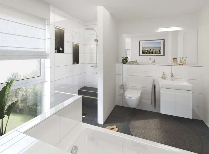 • Exklusive Badausstattung mit Sanitärobjekten von Villeroy und Boch