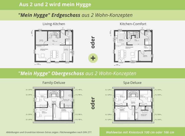 Anbauteile, Carport, Garage und Keller können Extras sein, die als Sonderausstattung angeboten werden. Abbildungen, Grundrisse und Flächenangaben sind beispielhaft und können Extras zeigen. Flächenangaben nach DIN 277.