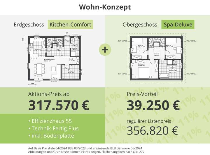 Bitte beachten Sie, dass die dargestellten Bilder und Grundrisse nur beispielhaft sind und unter Umständen Sonderbauteile enthalten, die nicht im aufgerufenen Preis inkludiert sind.