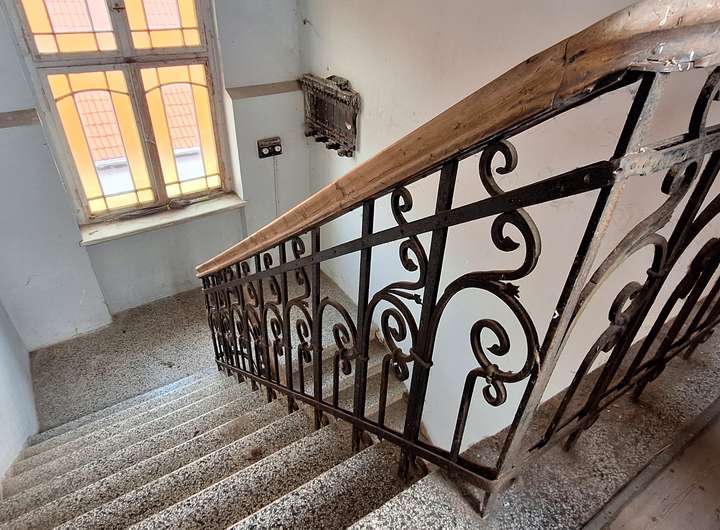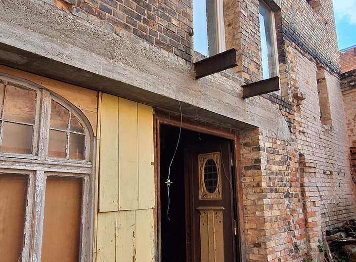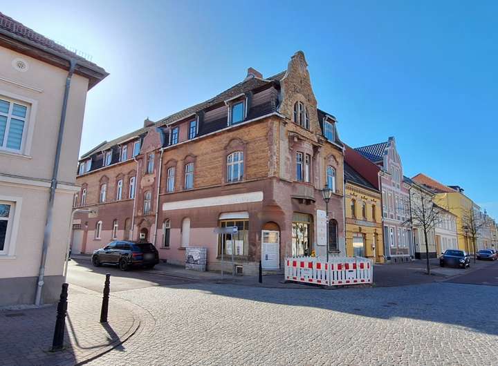 Das als Baudenkmal ausgewiesene Wohn- und Geschäftshaus wurde um 1900 gebaut und befindet sich mitten in der Innenstadt von Aken. Es wurde vom jetzigen Eigentümer teilsaniert.
