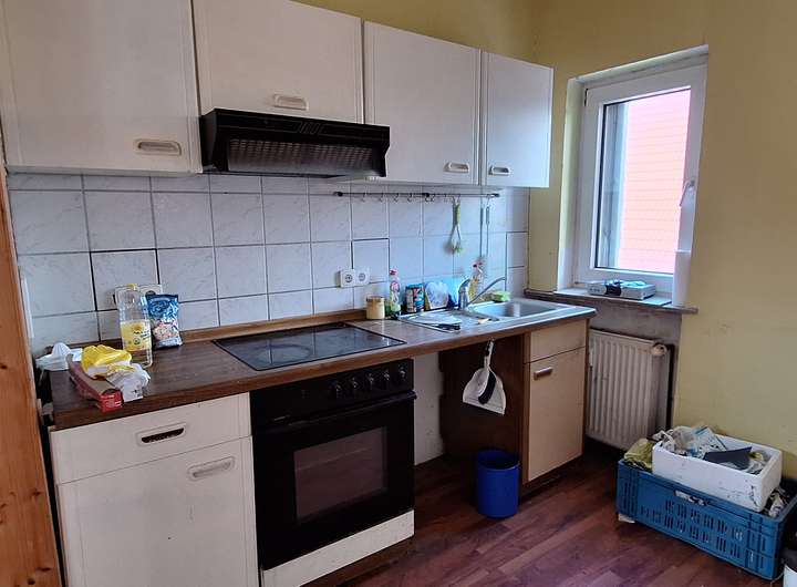Die Immobilie verfügt über ein Ladengeschäft und fünf Wohneinheiten, wovon zwei Wohneinheiten zur Vermietung geringfügig modernisiert werden müssen und drei Wohneinheiten eine umfangreiche Sanierung bedürfen. Im Erdgeschoss, welches mit einem Verkaufsraum und zwei Nebenräumen ausgestattet ist, liegt das Ladengeschäft, dass derzeit als Büro genutzt wird. Oberhalb dessen liegen im 1. OG und im 2. OG jeweils eine Dreizimmerwohnung. Auf der linken Seite des Hauses sind die drei Zweizimmerwohnungen im EG, 1.OG und 2.OG gelegen. Das Gebäude wird über eine Gaszentralheizung mit Brennwerttechnik beheizt.