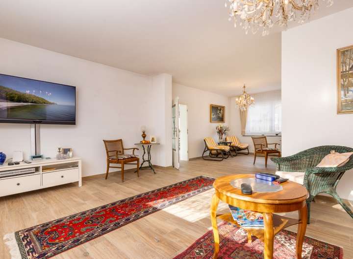 Engel und Völkers freut sich, Ihnen dieses tolle, freistehende Haus in bester Lage im Ostseebad Binz präsentieren zu dürfen. Großzügige 160 m² Wohnfläche bieten ausreichend Platz, verteilt über ein Souterrain und ein Erdgeschoss zum komfortablen Wohnen. Durch die erhöhte Lage ist dieses gerade grundsanierte und schicke Haus ein Hinkucker und auch die unmittelbare Lage zum Schmachter See spricht für sich. Über den Haupteingang betreten Sie das Haus und kommen vom Eingangsbereich sowohl in das Souterrain als auch in das erste Geschoss. Im Souterrain finden Sie das Büro, ein Schlafzimmer, Duschbad und eine voll ausgestattete Küche. Der Hauswirtschaftsraum mit Waschmaschine, Trockner und der neuen Heizungsanlage sowie der daneben liegende Lagerraum sind fast gleich groß. Ein Highlight ist in dieser Etage die finnische Sauna mit Dusche und Ruhemöglichkeit. Ebenfalls von dieser Etage betreten Sie die Garage, die neben vier weiteren Außenstellplätzen ausreichend Platz für Ihren Fuhrpark bietet. In der ersten Etage gehen vom Flur ein großes Badezimmer, zwei Schlafräume, ein Gäste WC, eine zweite Küche und das Wohnzimmer ab. Das Hauptbadezimmer ist mit einer begehbaren ebenerdigen Regendusche und hochwertiger Badkeramik ausgestattet und das Gäste-WC mit Toilette und Waschtisch. Beide Räume haben Tageslicht und sind mit modernen Fliesen gestaltet. Die praktisch geschnittene Küche ist im eleganten zeitlosen Design gehalten und es sind alle notwendigen Geräten vorhanden. Das große Wohnzimmer in L- Form bietet Ihnen neben einer gemütlichen Couchlandschaft genug Platz für einen großen Esstisch, an dem Sie Ihre Familie oder viele Freunde bewirten können. Von hier treten Sie über bodentiefe Fenster in den Wintergarten, von dem es sich wunderbar auf den nur wenige Schritte entfernten Schmachter See und den Sonnenuntergang schauen lässt. Auch in dem daneben liegenden Kaltwintergarten lässt es sich wunderbar relaxen und Sonne tanken. Von hier kommen Sie über ein großes Fensterelement in den gepflegten Garten im geschützten Innenhof. Besonders für Hundeliebhaber ist dieses Objekt sehr gut geeignet, da Sie von hier die neu angelegten Wanderwege rund um den Schmachter See unmittelbar begehen und die Ruhe genießen können. Aber auch im quirligen Leben des Ostseebades Binz sind Sie in wenigen Gehminuten, ebenso wie beim öffentlichen Nahverkehr. Dieses Objekt besticht durch seine Großzügigkeit, Lage und dem Topsanierungszustand und ist als Erst- und Zweitwohnsitz geeignet. Überzeugen Sie sich selbst.