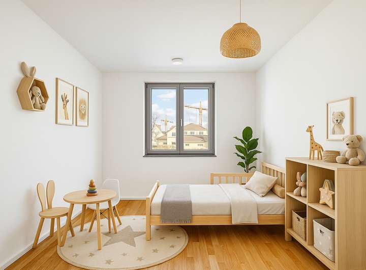 Die Eigentumswohnung befindet sich in einem zweigeschossigen Neubau-Quartier, bestehend aus fünf Wohnhäusern, welche 2021 fertiggestellt wurden. Insgesamt befinden sich 19 Wohnungen, 4 Gewerbeeinheiten in dem Quartier, das über eine Tiefgarage mit 28 Stellplätzen und 73 Abstellflächen für Fahrräder verfügt. Geprägt ist das Projekt von einem großzügigen Gemeinschaftsgarten, der auf vielfältige Weise genutzt werden kann. Die Neubauten wurden in dem hohen Energiestandard "KfW-Effizienzhaus 40" errichtet. Die Eigentumswohnung verfügt über eine Fußbodenheizung sowie eine kontrollierte Lüftung mit Wärmerückgewinnung.