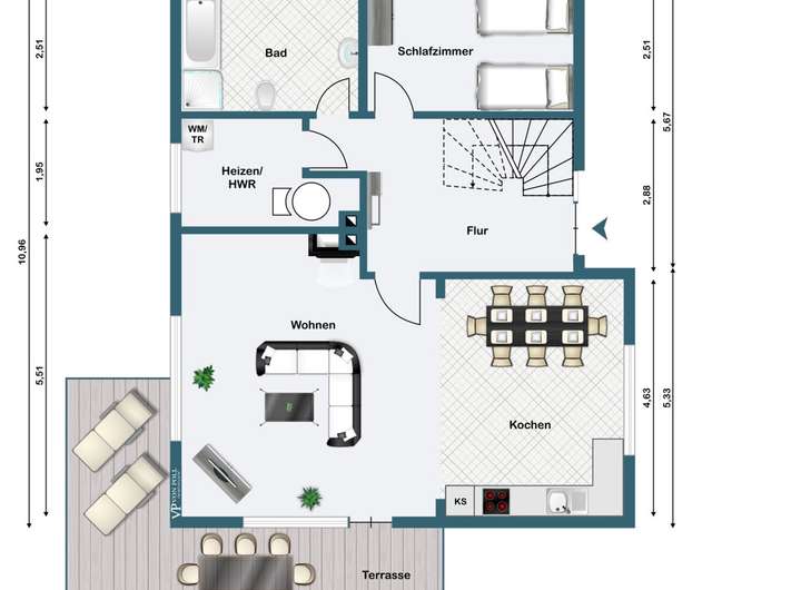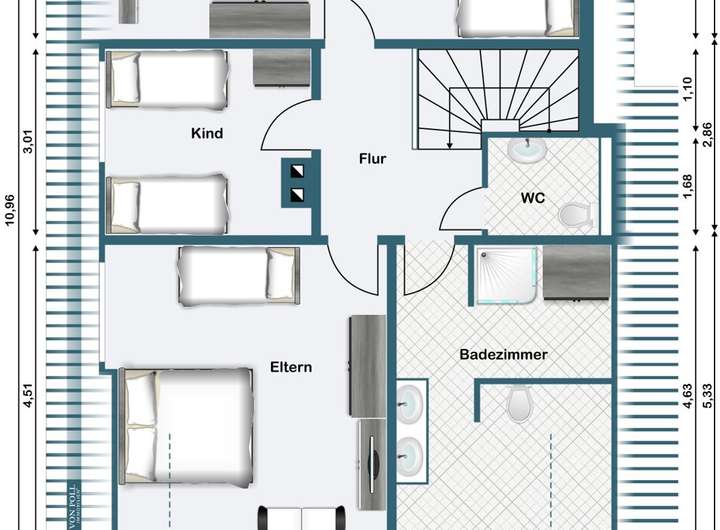 • Zugang zum Spitzboden mit Steh-Höhe, der sich noch als Nutzfläche ausbauen lässt