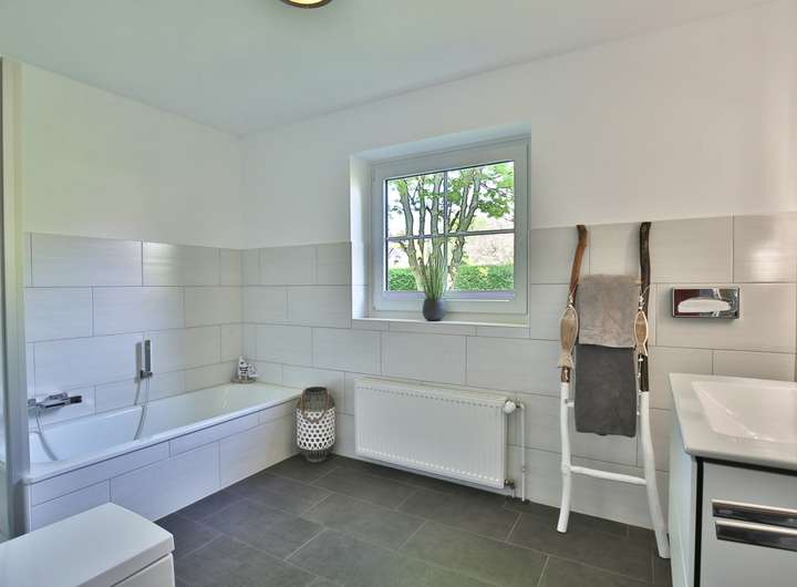 Ein geräumiges Badezimmer mit Badewanne und eines der vier Schlafzimmer befinden sich ebenfalls im Erdgeschoss.