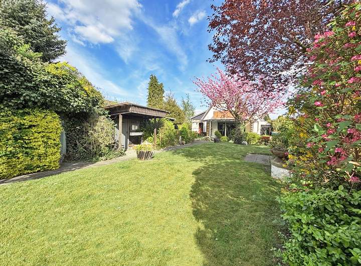Hier erschließt sich ein großes und lichtdurchflutetes Grundstück von knapp 1.600 m², das bei Bedarf durch 2 Baufenster geteilt werden kann.
