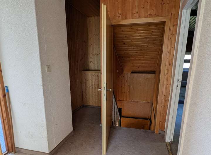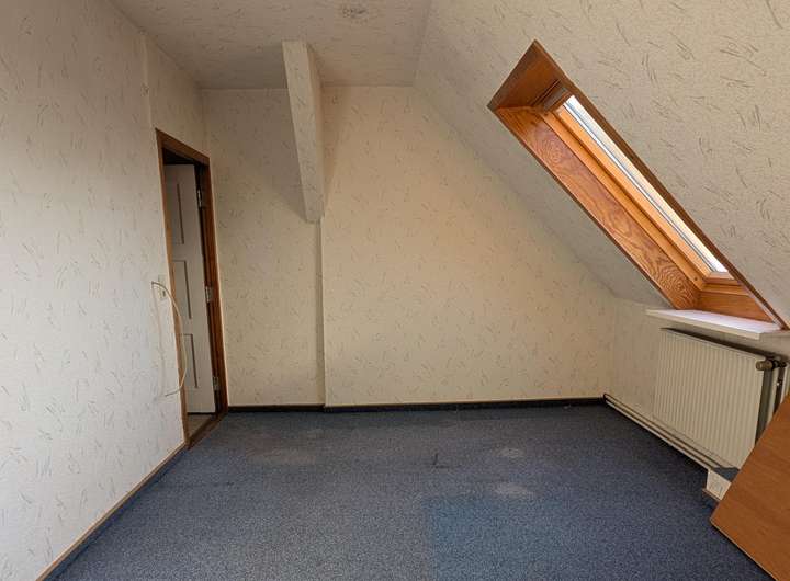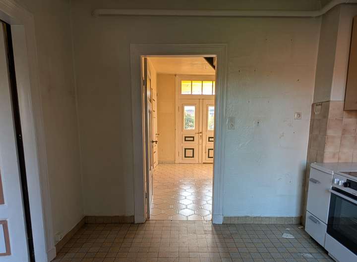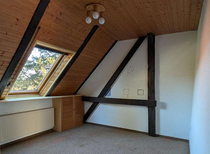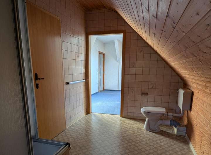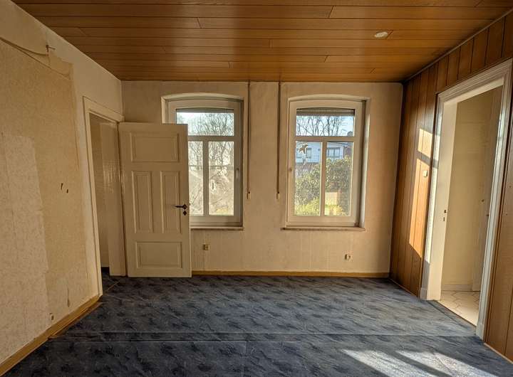 Das Objekt ist vollumfänglich sanierungsbedürftig – sowohl im Innen- als auch im Außenbereich besteht Instandsetzungsbedarf. Die Fenster sind aus Kunststoff, die Eingangstür aus Holz mit historischer Optik. Das Dach ist als Satteldach mit Betonsteineindeckung ausgeführt.