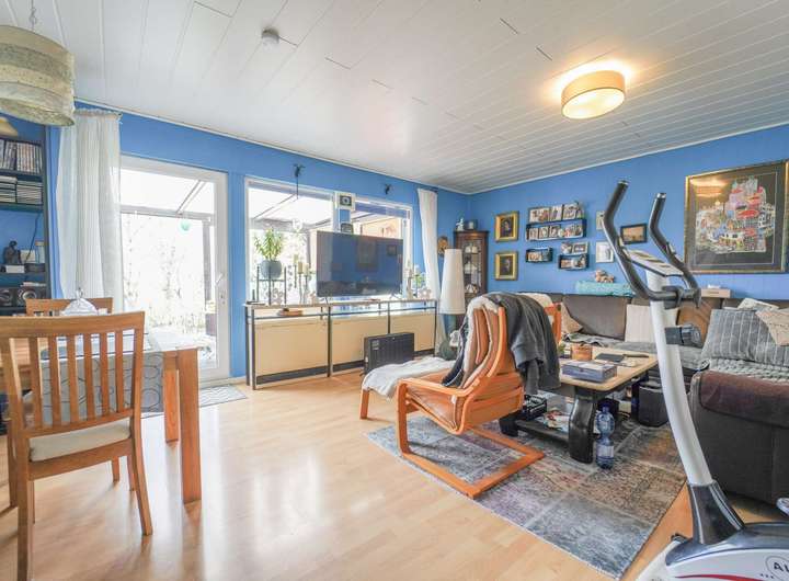 Im Erdgeschoss erwarten Sie drei helle Zimmer, eine geräumige Küche, ein Badezimmer sowie ein praktischer Abstellraum – insgesamt rund 76,55 m² Wohnfläche. Ein besonderes Highlight ist der ca. 30 m² große Wintergarten, der durch seine Helligkeit und den direkten Zugang zum Garten zum Lieblingsplatz im Haus wird. Das Obergeschoss bietet zwei weitere Zimmer, ein zusätzliches Badezimmer sowie einen weiteren Abstellraum – ideal als Rückzugsort für Kinder, Gäste oder zum Arbeiten.