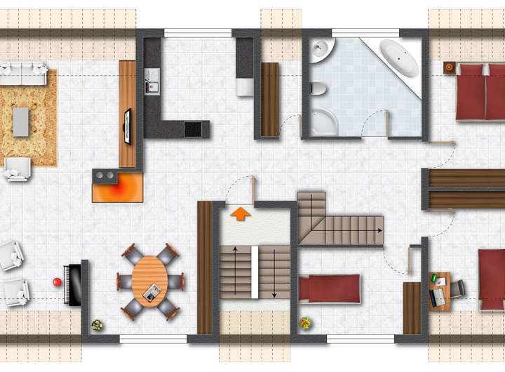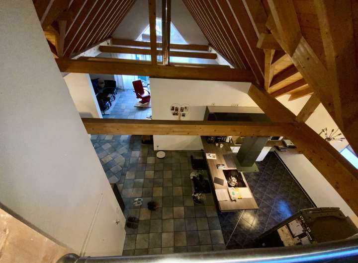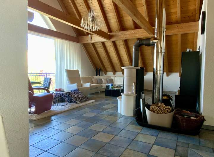 Das Highlight des Hauses ist die exklusive Dachgeschosswohnung im Loft-Stil mit ca 190 m² Wohnfläche. Sie verfügt über drei Schlafzimmer, einen großzügigen offenen Wohn-/Ess-/Kochbereich mit eindrucksvoller Fensterfront und Kamin. Ein luxuriöses Badezimmer mit Whirlpool und Dusche runden das Angebot ab. Es besteht auch die Möglichkeit ein separates Gäste-WC zu installieren. Die Anschlüsse liegen bereits in einem Nebenzimmer.