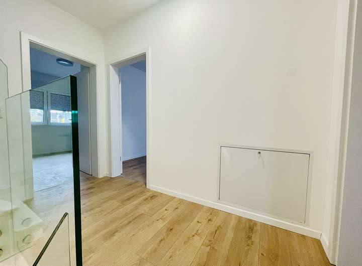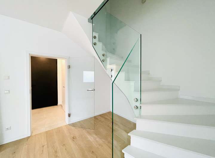 Das Obergeschoss verfügt über zwei großzügige Zimmer, die vielfältig nutzbar sind – beispielsweise als Schlafzimmer, Arbeitszimmer oder Gästezimmer. Das moderne Duschbad mit Walk-in-Dusche rundet das Raumangebot auf dieser Etage ab. Ein weiteres Highlight bildet der Elternbereich im Staffelgeschoss: Hier finden Sie ein komfortables Bad-en-Suite sowie eine private Dachterrasse, die zum Verweilen und Sonne genießen einlädt. Dieser Rückzugsort bietet Privatsphäre und eine exklusive Atmosphäre.