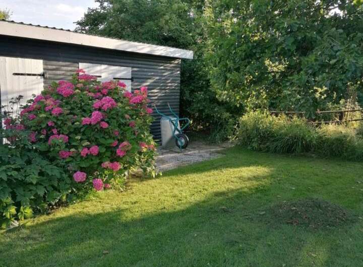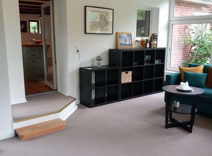 Angeschlossen an das Haupthaus befindet sich ein Anbau mit zwei Abstellräumen, einem Holzlager sowie einer Werkstatt. Das Grundstück befindet sich im Außenbereich der Gemeinde Rodenäs und liegt zusammen einigen wenigen anderen Häusern in direkter Deichnähe. Zum Ortskern und Bahnhof nach Klanxbüll sind es ca. 2,5km.