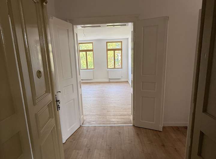 Ich biete eine charmante 100 m² große 4-Raum-Wohnung in einem Gründerzeit-Altbau im Erstbezug an.