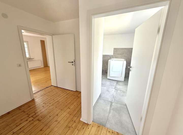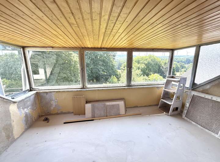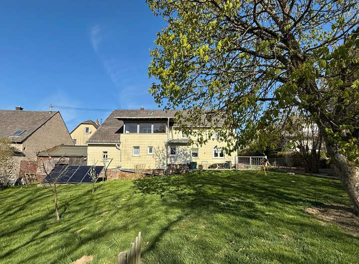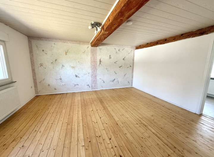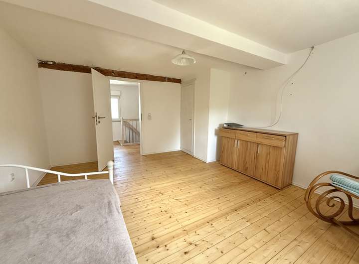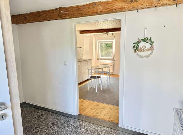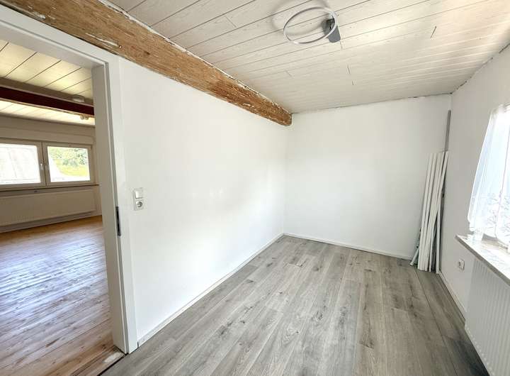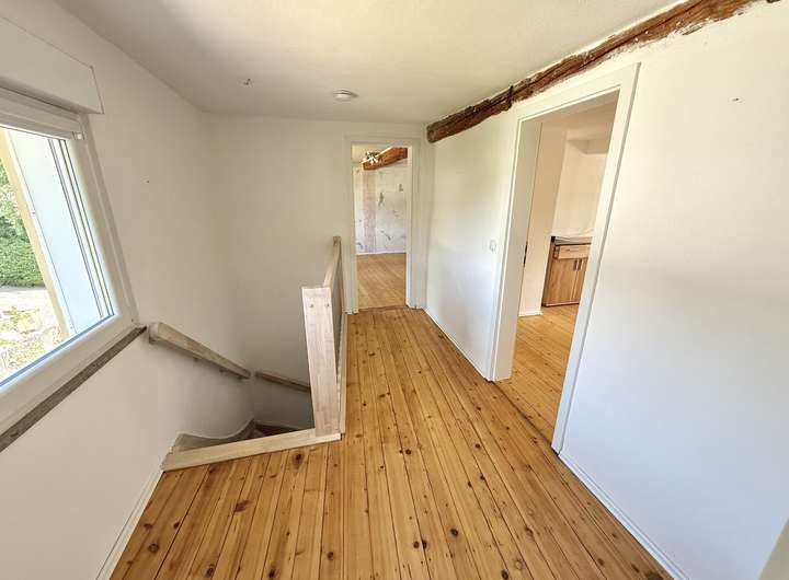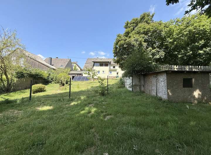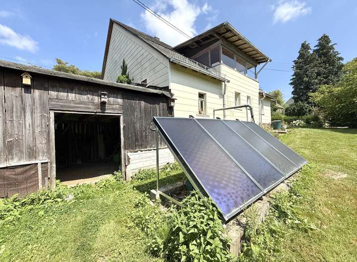 Das ehem. Fachwerkhaus aus ca. 1873 verbindet historischen Charme mit modernem Wohnkomfort & bietet ca. 152 m² Wfl.. Das Grundstück mit rd. 1.816 m² liegt am Ortsrand und eröffnet einen unverbaubaren Weitblick. Es verfügt im unteren Bereich über eine abgetrennte Fläche mit Törchen und einem Hühnerstall - Tierhaltung ist ggf. nach Prüfung der örtlichen Vorgaben möglich. Das Haus wurde im Inneren bereits umfangreich saniert und überzeugt mit einem aufgearbeiteten Dielenboden. Im EG empfängt Sie ein einladender Eingangsbereich, der in die Wohnküche und das Wohn-/Esszimmer übergeht. Das Gäste-WC sowie das Duschbad wurden 2023 komplett erneuert und mit Fußbodenheizung ausgestattet. Der große Heizungsraum schafft zusätzlichen Stauraum. Im OG befinden sich drei Schlafzimmer sowie ein Wintergarten, der durch den Austausch der Fenster weiter aufgewertet werden kann. Ein weiteres, ebenfalls in 2023 erneuertes Bad mit Whirlpool und Fußbodenheizung sorgt für besonderen Komfort. Der Speicher ist ausbaubar. Ein Holzschuppen und eine Garage bieten zusätzliche Nutzfläche.
