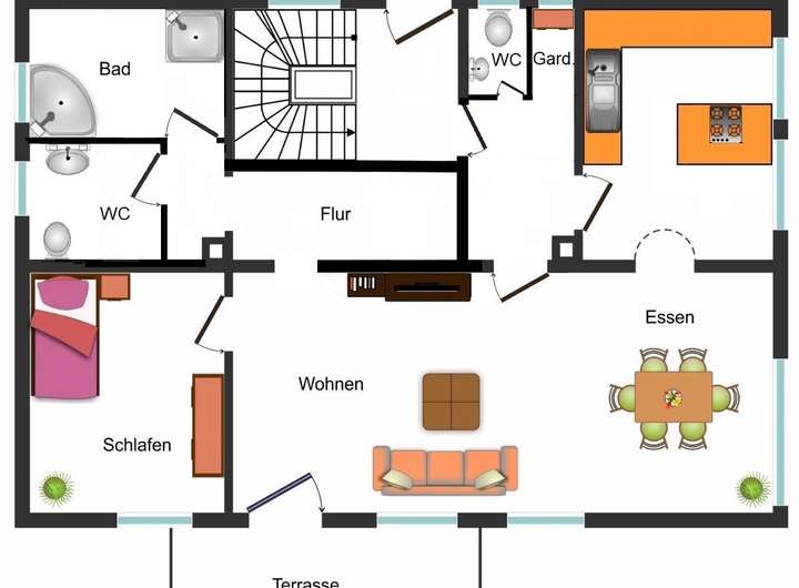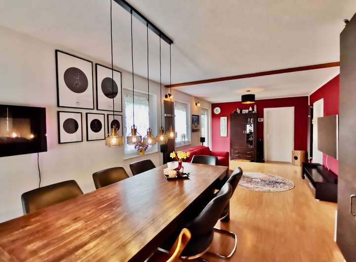 Dieses moderne Mehrfamilienhaus bietet drei Einheiten, wovon die Dachgeschosswohnung bis 31. März 2026 befristet vermietet ist. Das Erdgeschoss wurde umfangreich renoviert und der Grundriss etwas verändert, so dass ein großes Wohn- u. Esszimmer entstand. Zum Erdgeschoss gehört eine schöne Küche mit genügend Platz, ein Schlafzimmer sowie ein Bad und ein separates Gäste-WC.