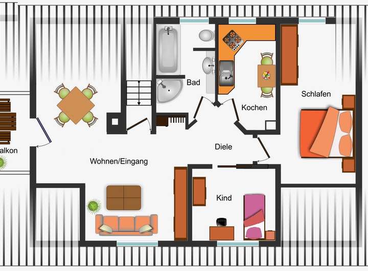 Das Dachgeschoss wurde 2009 aufgestockt und mit einem neuen Dach ausgestattet. Dementsprechend ist die Ausstattung der Dachwohnung aus dem Jahr 2009.