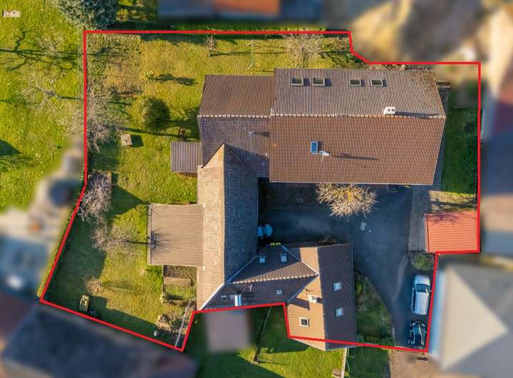 Das Grundstück mit Hof und Garten umfasst eine Fläche von ca. 1.333 m², was bedeutet, dass es auch außerhalb reichlich Platz gibt. Insbesondere der nordwestlich gelegene Garten mit diversen Obstbäumen bietet mit einer Fläche von über 550 m² mehr Fläche, als so manches Baugrundstück.