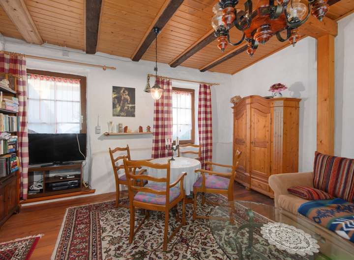Gegenüberliegend steht sich Gebäude aus dem Jahr 1836, das als "Alte Schmiede" bekannt ist. Dieses Stück Ortsgeschichte wurde ca. 1995 ausgebaut und verfügt über ca. 100 m² Nutzfläche.
