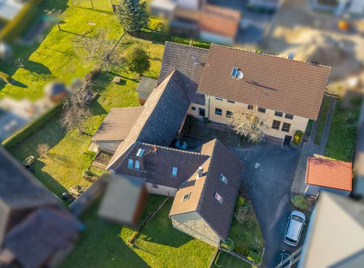 Auf dem Gelände befinden sich noch weitere Baulichkeiten wie die an das Haupthaus angebaute Scheune, die große Garage, ein Carport und weitere Nebenräume.