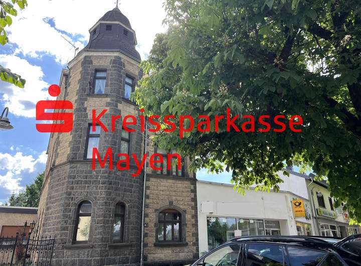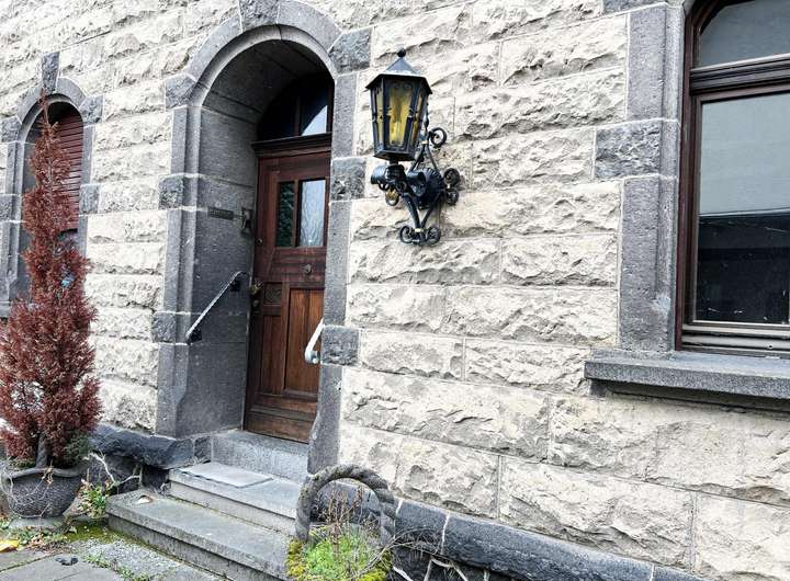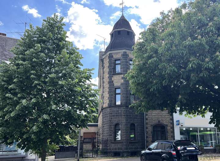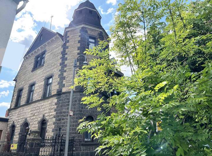 Die ca. 1906 erbaute Villa präsentiert sich mit einer schönen Fassade aus Tuffstein und Basalt und einem Erkerturm. In den 60er Jahren wurde die Immobilie um einen Anbau erweitert.