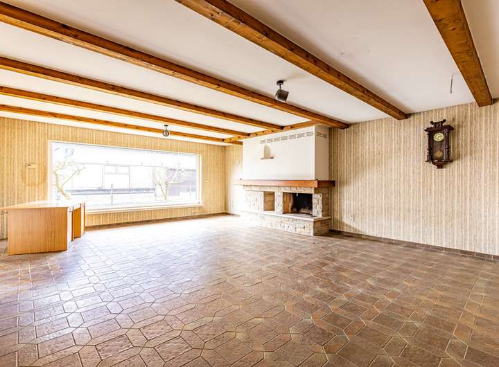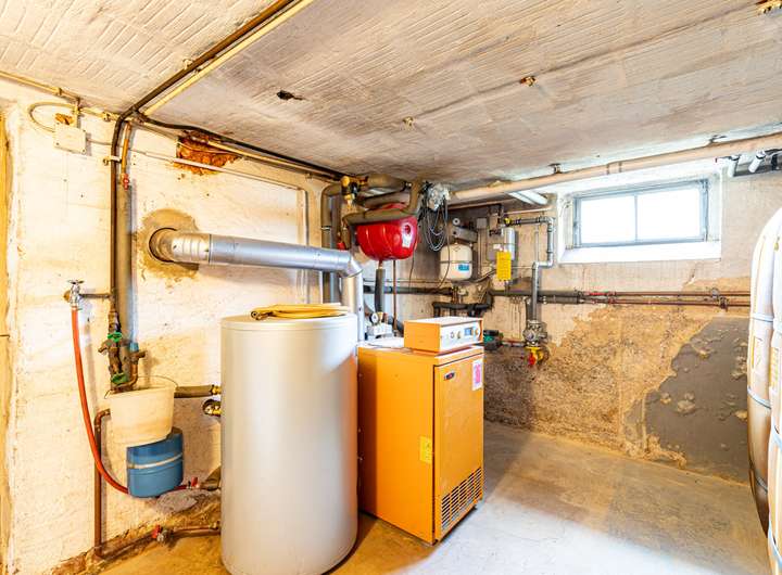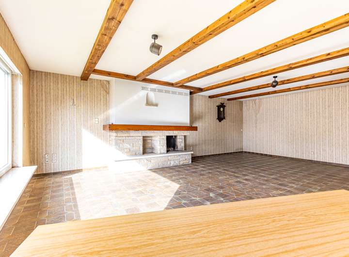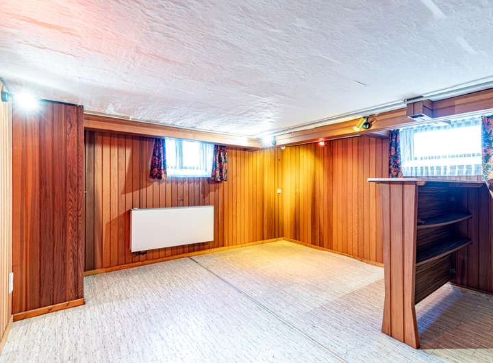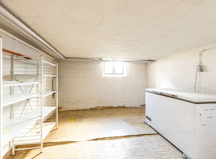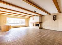 Der Anbau verfügt wie oben beschrieben über ein Badezimmer, zwei Abstellräume, einen Küchenbereich und einen großen Wohn-Ess-Schlafbereich mit offenem Kamin und Fußbodenheizung, alleine der Bereich ist etwa 115 m² groß. Das Haupthaus ist voll unterkellert.