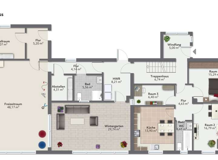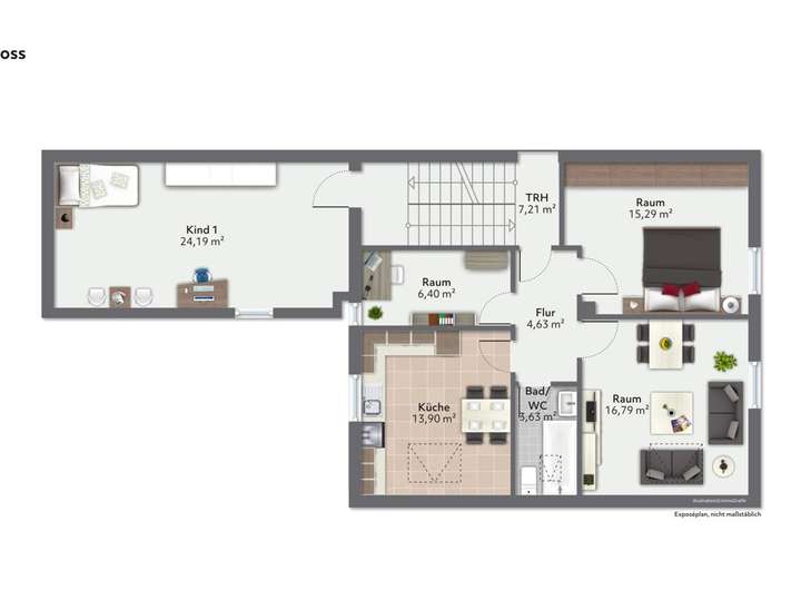 Die Grundrisse sind ggf. nicht maßstabsgerecht. Bei evtl. Einrichtungsgegenständen handelt es sich um Möbelierungsbeispiele. Es ist möglich, dass infolge von vorgenommenen Umbauten die Grundrisse nicht in vollem Umfang den tatsächlichen Gegebenheiten entsprechen.