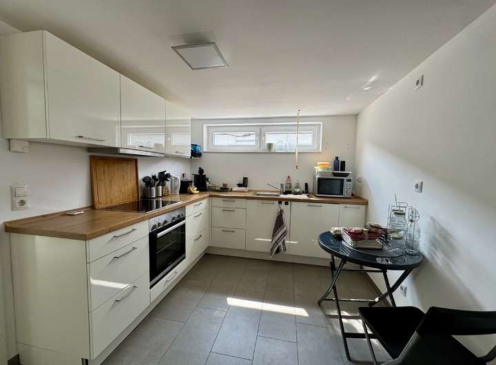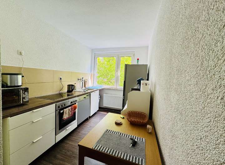 Im Erdgeschoss befindet sich eine ca. 74 m² große Wohnung, die sich in zwei Zimmer, ein Wohnzimmer, eine Küche, ein Badezimmer sowie einen Flur aufteilt. Ein besonderes Highlight dieser Einheit ist der dazugehörige kleine Garten mit Terrasse.