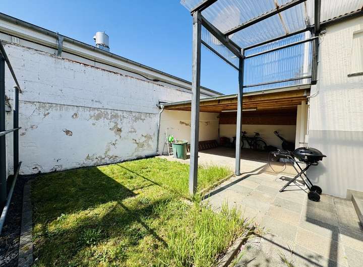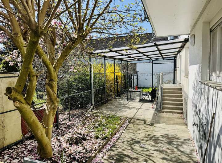 Das Grundstück wird über eine gemeinschaftlich genutzte Eingangstür betreten, die in einen kleinen, charmanten Innenhof führt. Von hier aus besteht sowohl Zugang zu dem straßenseitigen Vorderhaus als auch zu dem im hinteren Bereich gelegenen, zum Verkauf stehenden Haus.
