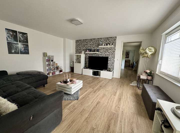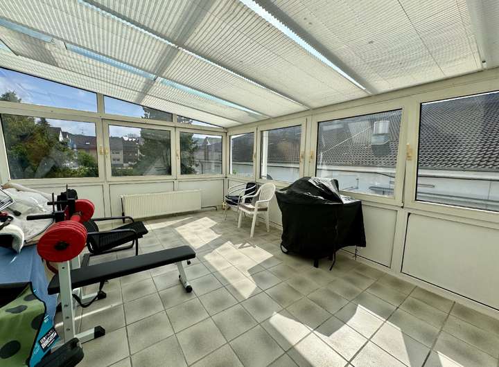 Die Wohnung im Obergeschoss umfasst rund 78 m² Wohnfläche und besteht aus einem Schlafzimmer, einem Wohnzimmer, einer Küche, einem Badezimmer, einem Flur sowie einem großzügigen Wintergarten, der zusätzlichen Wohnkomfort bietet.