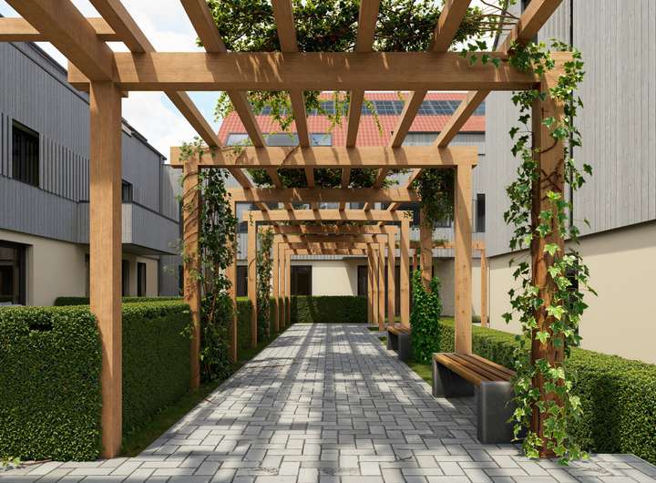 Großzügig angelegte Außenflächen und begrünte Dachterrassen schaffen einen ruhigen Ort zum entspannen und verweilen.