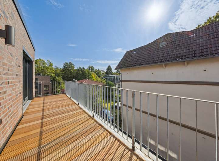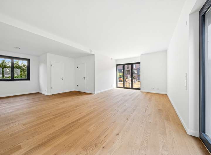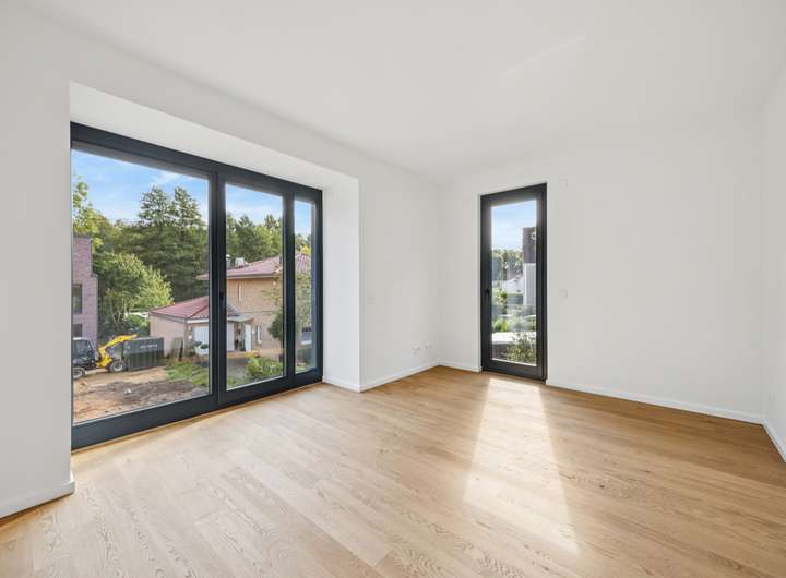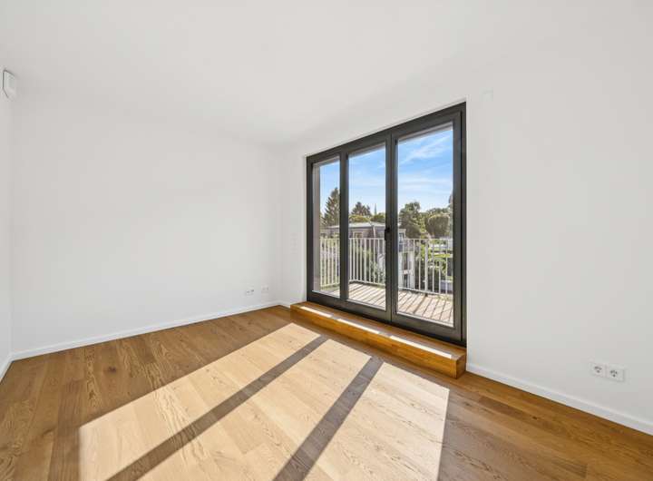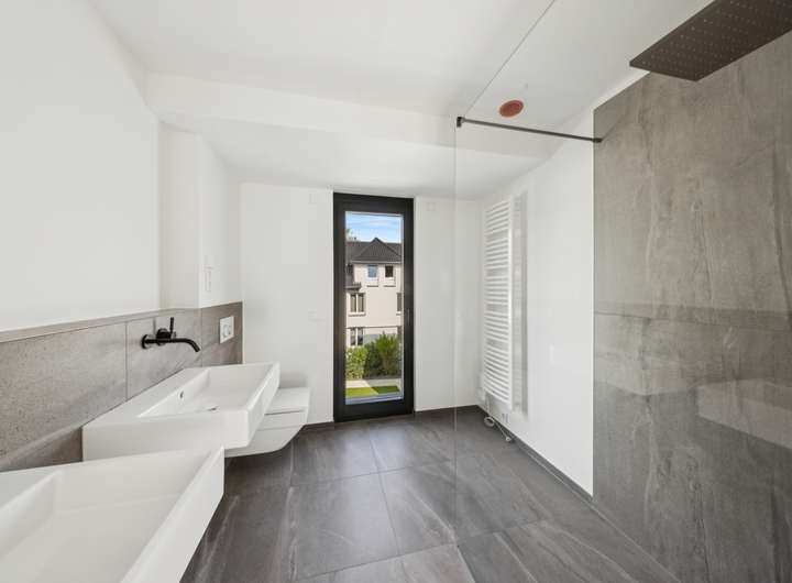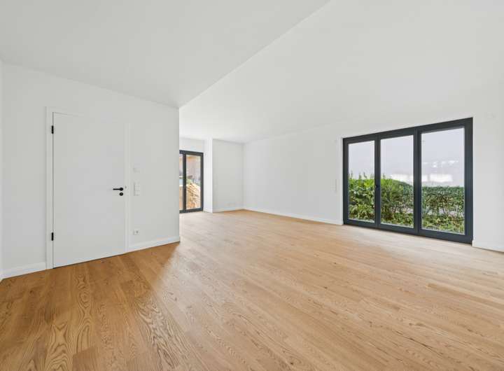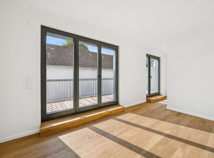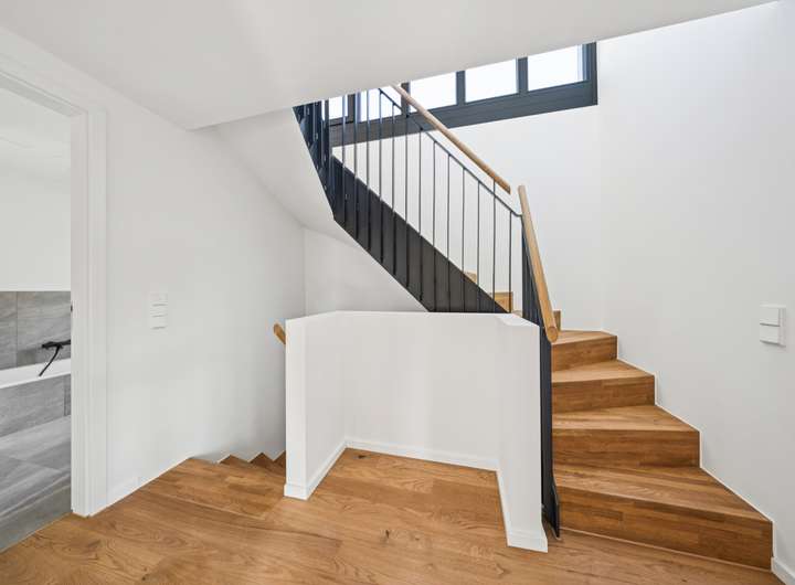 Die Ausstattung der Wohneinheiten überzeugt durch eine stilvolle Kombination aus hochwertigem Design, moderner Technik und durchdachter Funktionalität. Edles Eichenparkett in Landhausdielenoptik und großformatige Fliesen schaffen eine elegante Wohnatmosphäre. Für höchsten Komfort sorgen eine Fußbodenheizung mit Einzelraumsteuerung, dimmbare Lichtschalter und wandbündige Türen. Die stilvollen Badezimmer sind mit Dornbracht-Armaturen und bodengleichen Duschen ausgestattet, ergänzt durch ein Gäste-WC im Erdgeschoss.