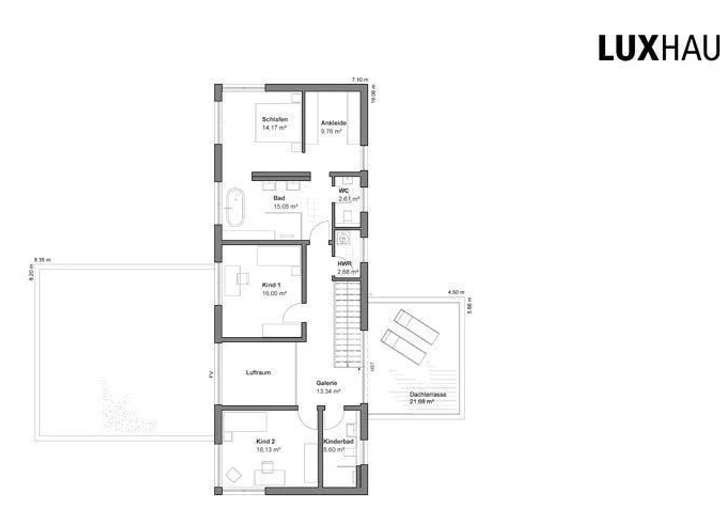 Das LUXHAUS vereint das Bedürfnis einer Familie mit Kindern nach Funktionalität mit höchsten gestalterischen und technischen Ansprüchen. Ein besonderes Augenmerk liegt hierbei auf der Verflechtung des Innenraums mit dem Außenraum, welche über die Kubatur des Gebäudes geschaffen wird.