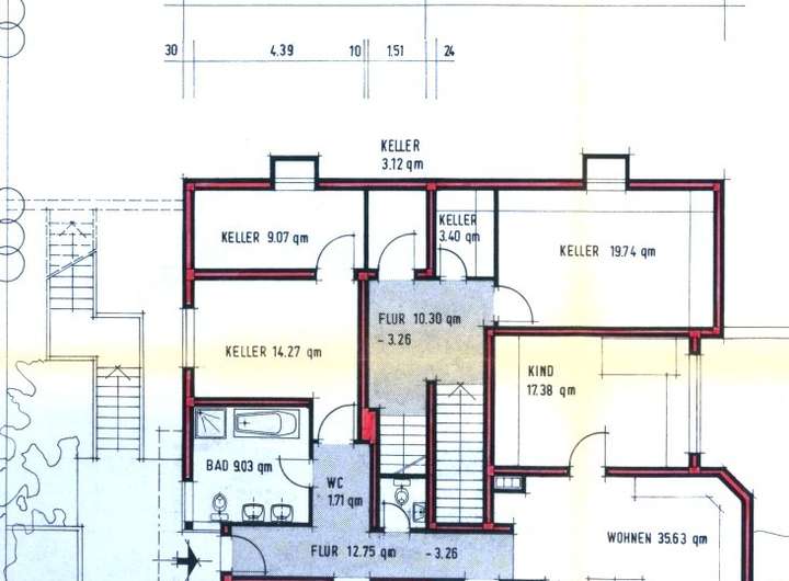 + 3-Zimmer-Wohnung im 1. Untergeschoss ca. 106 m², aktuell vermietet (Kaltmiete 820 €/Monat, 9.840 €/Jahr)