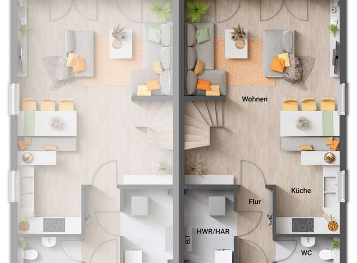 Die effiziente Raumaufteilung des Doppelhauses Mainz sorgt für maximalen Wohnkomfort.