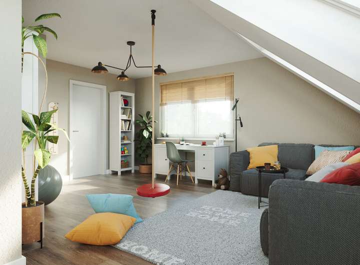 Die ideale Raumaufteilung lässt Ihnen viele Möglichkeiten, Ihre Gestaltungswünsche umzusetzen. Unter dem Dach bietet Ihnen das Studio den perfekten Platz für Hobby, Arbeit oder Gäste.
