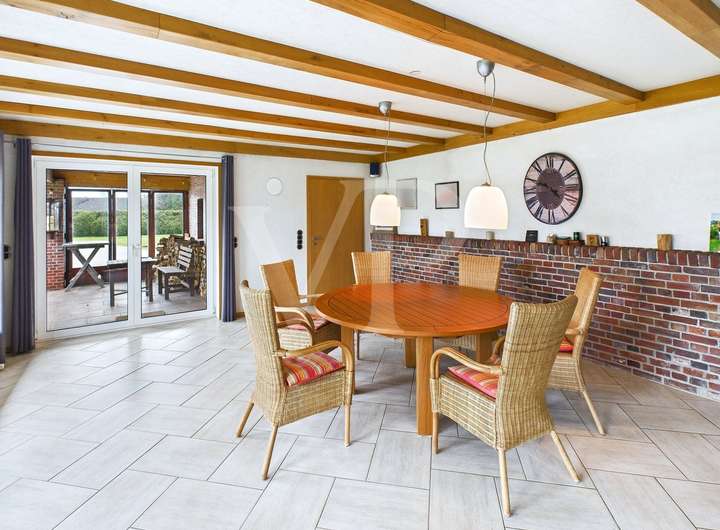 Dieses charmante Landhaus bietet eine großzügige Wohnfläche von ca. 345 m² auf einem weitläufigen Grundstück von ca. 2.622 m². Es wurde ca. 1919 erbaut und besteht aus zwei separaten Wohneinheiten, die sich ideal für Mehrgenerationenwohnen oder als Kombination von Wohnen und Arbeiten eignen. Die Wohneinheit im Obergeschoss verfügt über ca. 100 m² und ist aktuell festvermietet. Die Immobilie umfasst insgesamt 10 Zimmer, darunter 5 geräumige Schlafzimmer und 3 funktional ausgestattete Badezimmer. Die Raumaufteilung bietet vielfältige Gestaltungsmöglichkeiten und lädt zur individuellen Anpassung an persönliche Wohnbedürfnisse ein. Im Jahr 2001 wurden umfangreiche Modernisierungen vorgenommen. Highlight ist der Wintergarten, der mit einer angenehmen Fußbodenheizung ausgestattet wurde und einen hellen, einladenden Wohnraum bietet. Der hintere Gebäudetrakt erfuhr im Jahr 2002 eine Umgestaltung, wobei eine alte Scheune zu einem Wohnbereich umgebaut und um 8 Meter verkürzt wurde. Der neugestaltete Giebel verfügt über eine Hohlschichtisolierung an der Innenwand, die für eine effiziente Wärmedämmung sorgt. Die Heizungsanlage im hinteren Gebäudebereich wurde im Jahr 2000 erneuert, wodurch die Immobilie über eine verlässliche zentrale Wärmeversorgung verfügt. Hier ist eine Zentralheizung verbaut, die gleichmäßig angenehme Temperaturen in der Immobilie gewährleistet.
