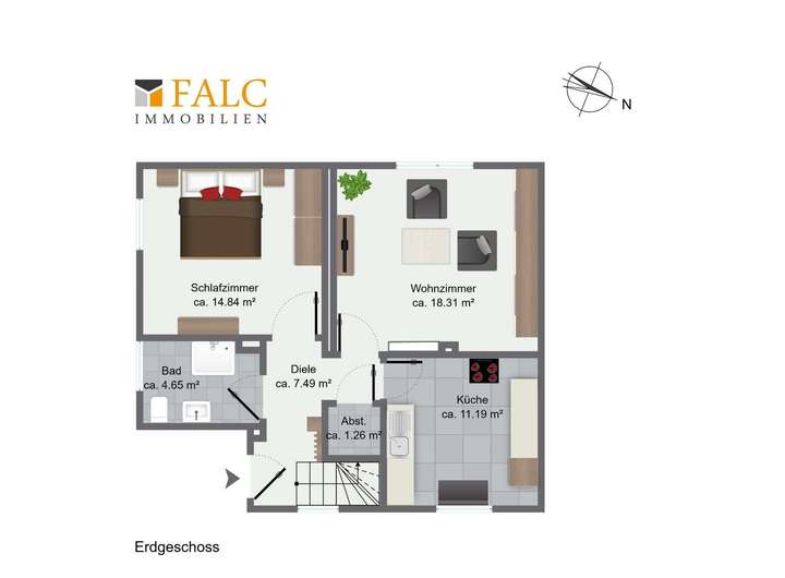 - Wohn- und Schlafzimmer sowie Küche und Bad befinden sich im Erdgeschoss, wodurch die Immobilie auch bei Mobilitätseinschränkungen im Alter noch gut nutzbar ist