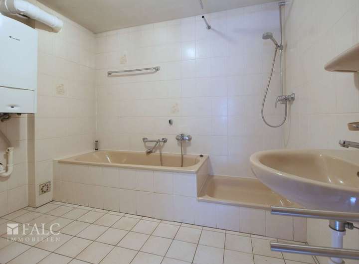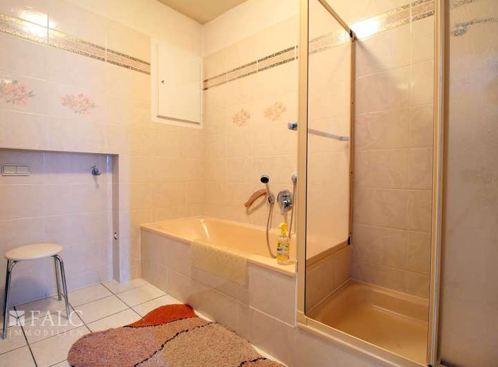 - Badezimmer mit Dusche und Wanne und Gäste-WC aus den 1990er Jahren