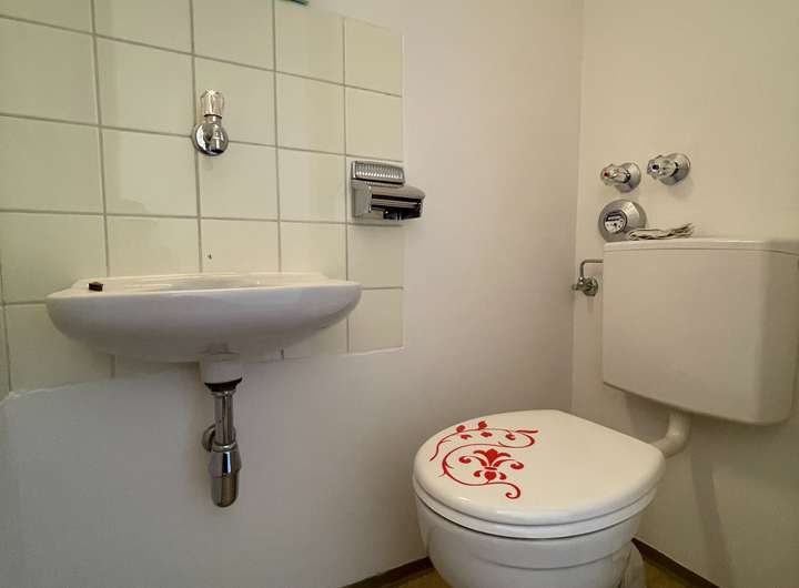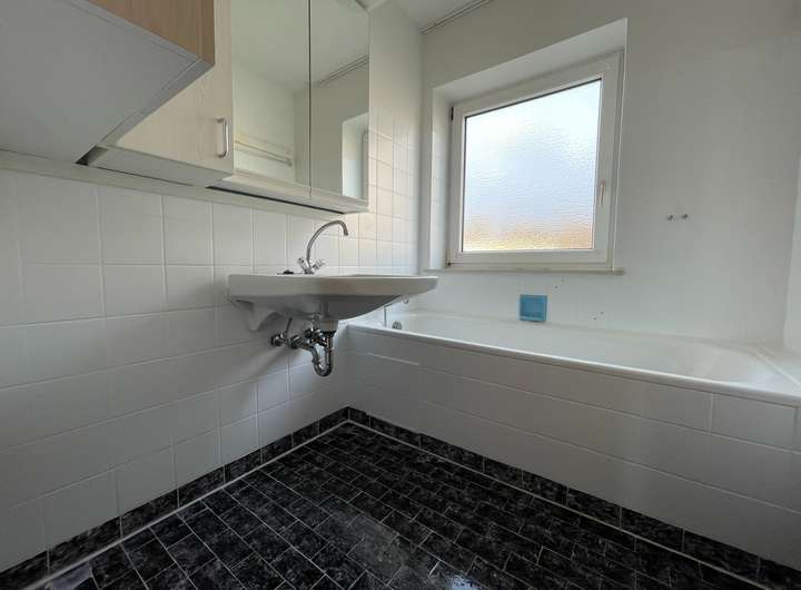 Das Bad ist mit Wanne, Fenster und Waschmaschinenanschluss ausgestattet. Das WC ist separat.