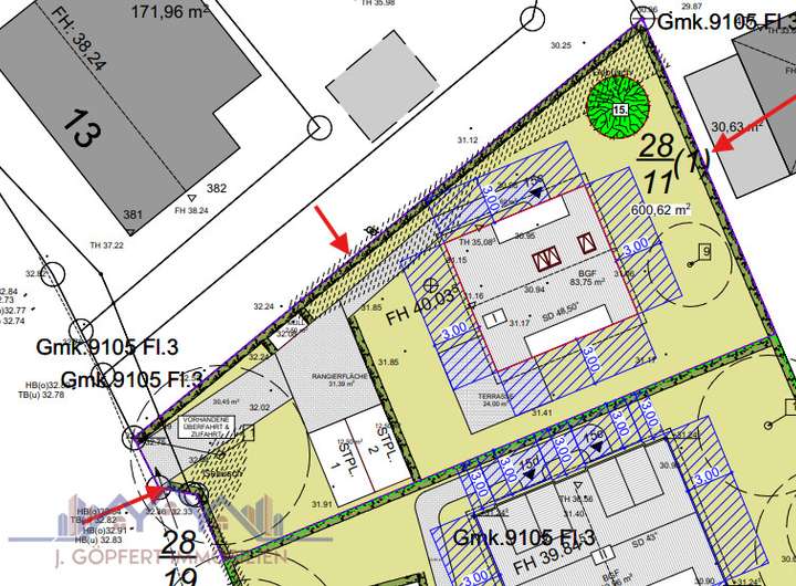 Baupläne und Baugenehmigung können bei der Besichtigung oder nach Nachweis eingesehen werden. Das Grundstück ist voll erschlossen (Strom, Telekommunikation, Wasser und Abwasser liegen an der Straße) und nach Bebauungsplan bebaubar. Die Grundstücksnutzung ist für Wohnen vorgesehen.