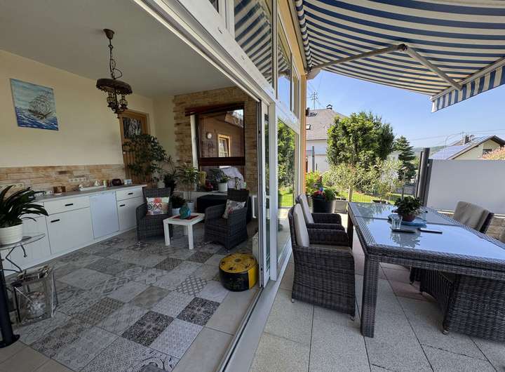 Der Wintergarten mit offener Küche bietet zusätzlichen Raum für gesellige Stunden.